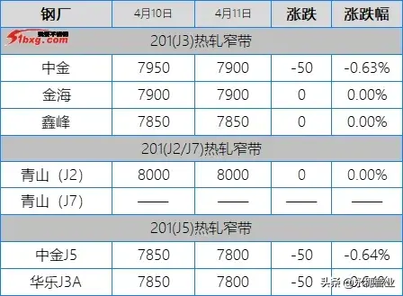 今日早间201冷轧青山代理高位持平,市场贸易商部分下跌10-50元/吨,市场早间价格仍偏高,实际成交仍多有优惠,报价和成交仍多有价差。