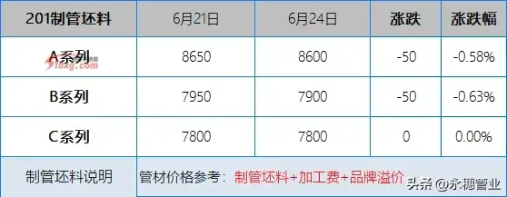 较上周五早间,今日早间市场市场201报价部分持平,部分下跌30-50元/吨;304报价部分持平,部分下跌50元/吨,目前主流报价区间:201新料在5600-5700元/吨;304新料在10150-10250元/吨。