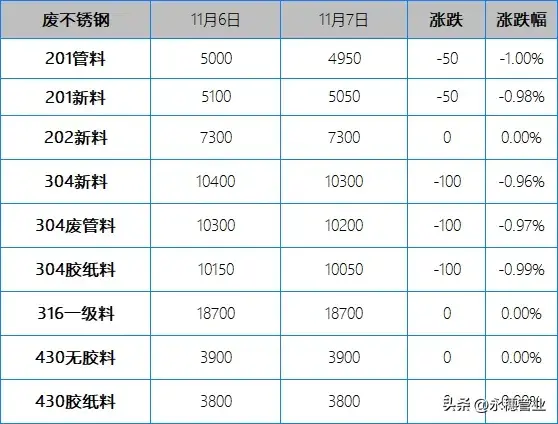 废料方面:今日早间304下调20-100元/吨,午后反弹上涨30-80元/吨,市场具体成交以看货定价为主;201早间部分下调30-50元/吨,午后多有跟高收货现象。目前市场主流报价区间:201新料在5000-5100元/吨;304新料在10250-10350元/吨。